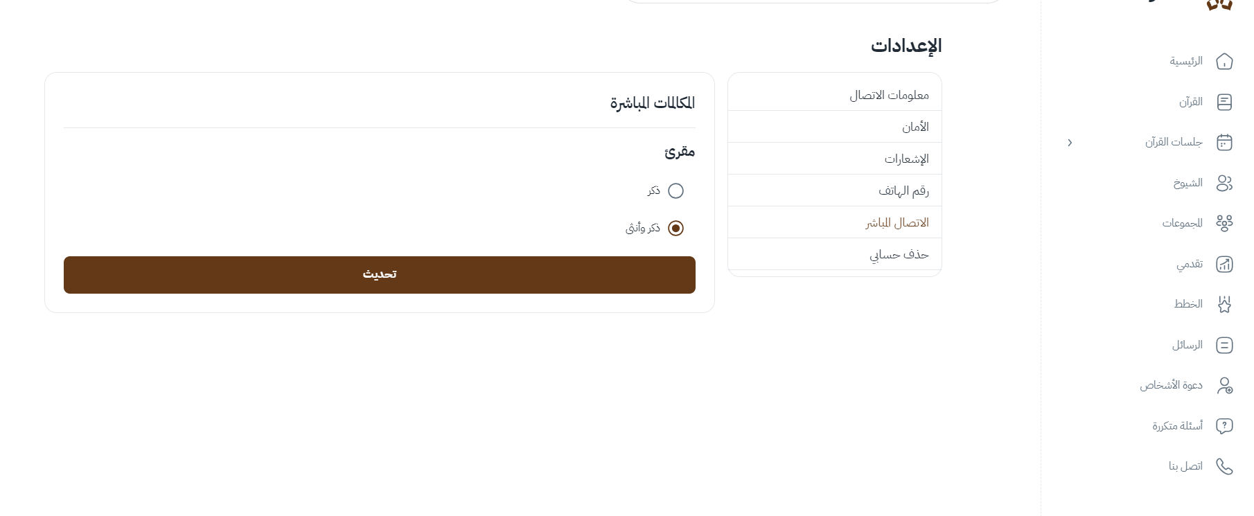 الاتصال المباشر :هذا الإعداد يسمح لك بتحديد نوع الجنس للأشخاص الذين يمكنك الاتصال بهم مباشرة عبر المنصة