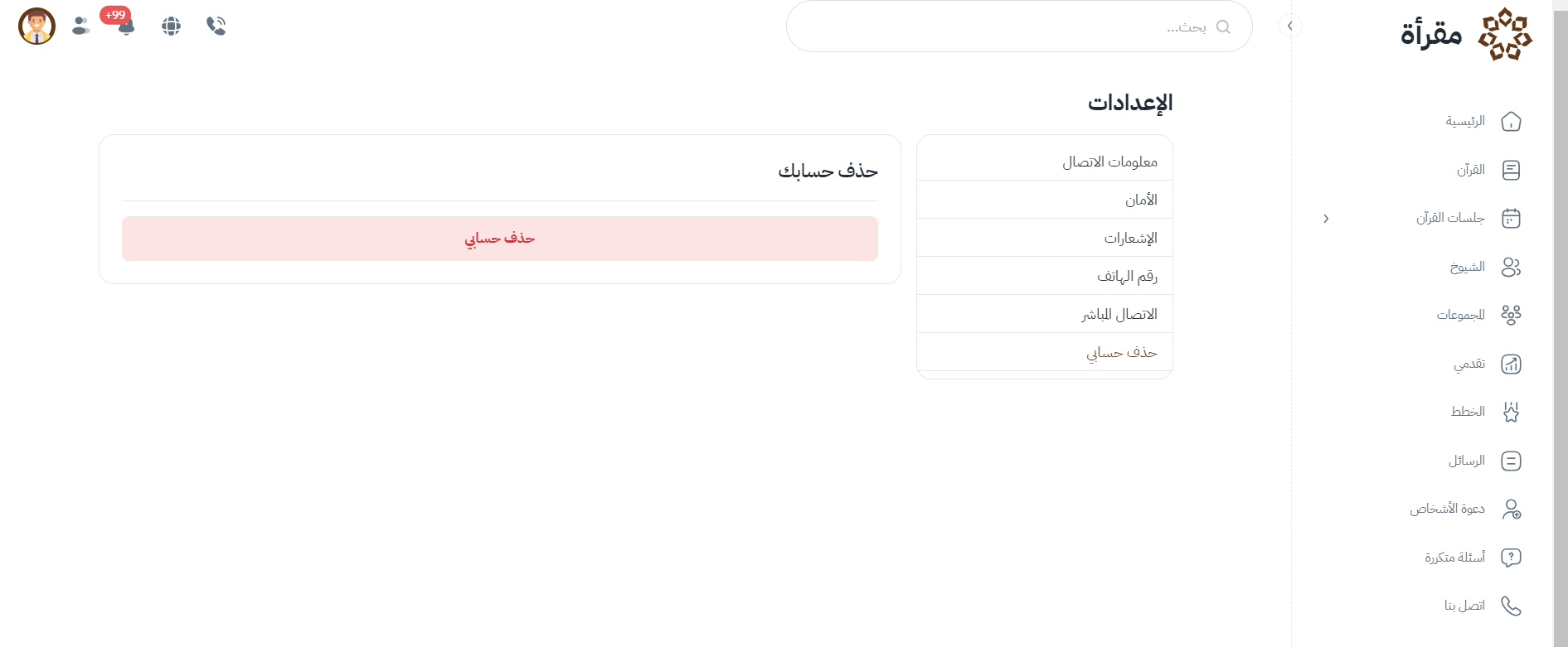 من خلال النقر على زر ( حذف حسابي) يتم انهاء انضمامك إلى مقرأة اقرأ