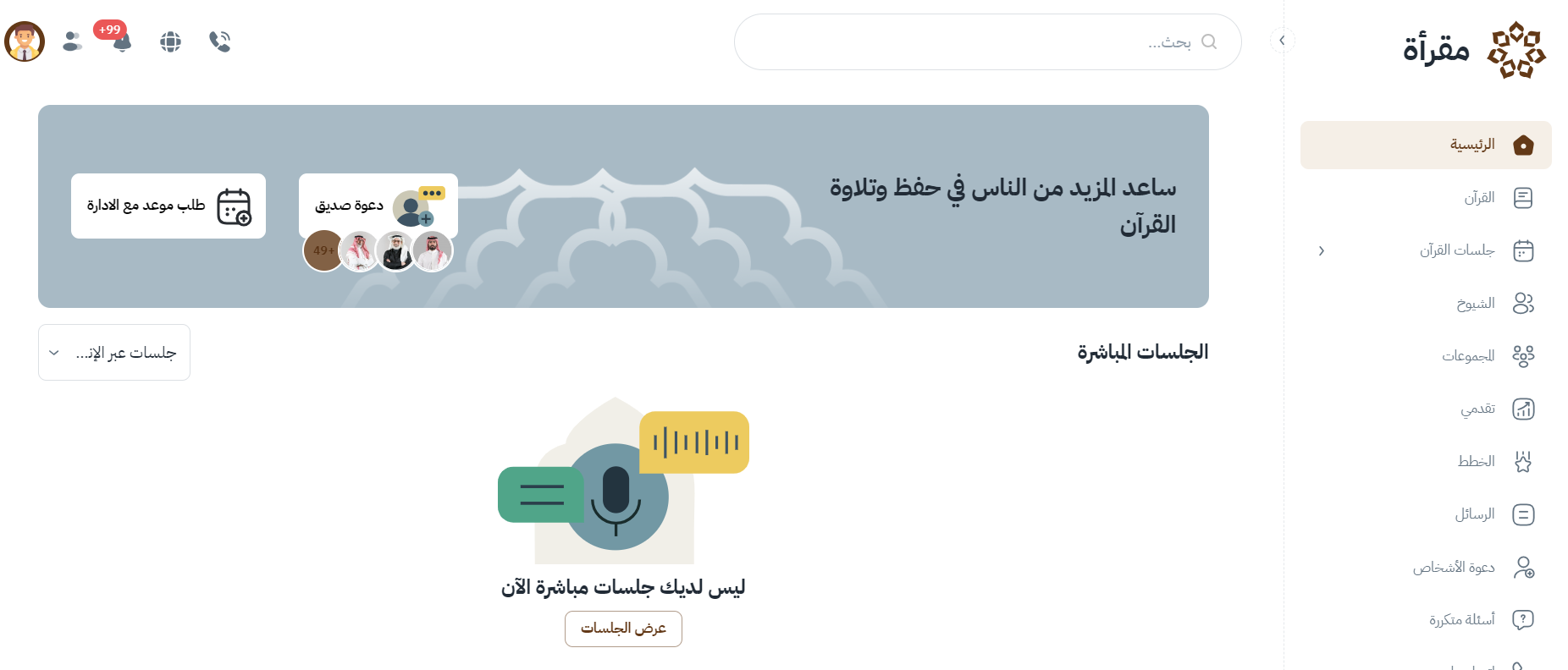 عند رغبتك في حجز موعد مع إدارة مقرأة اقرأ، يمكنك استخدام خاصية "طلب موعد مع الإدارة"