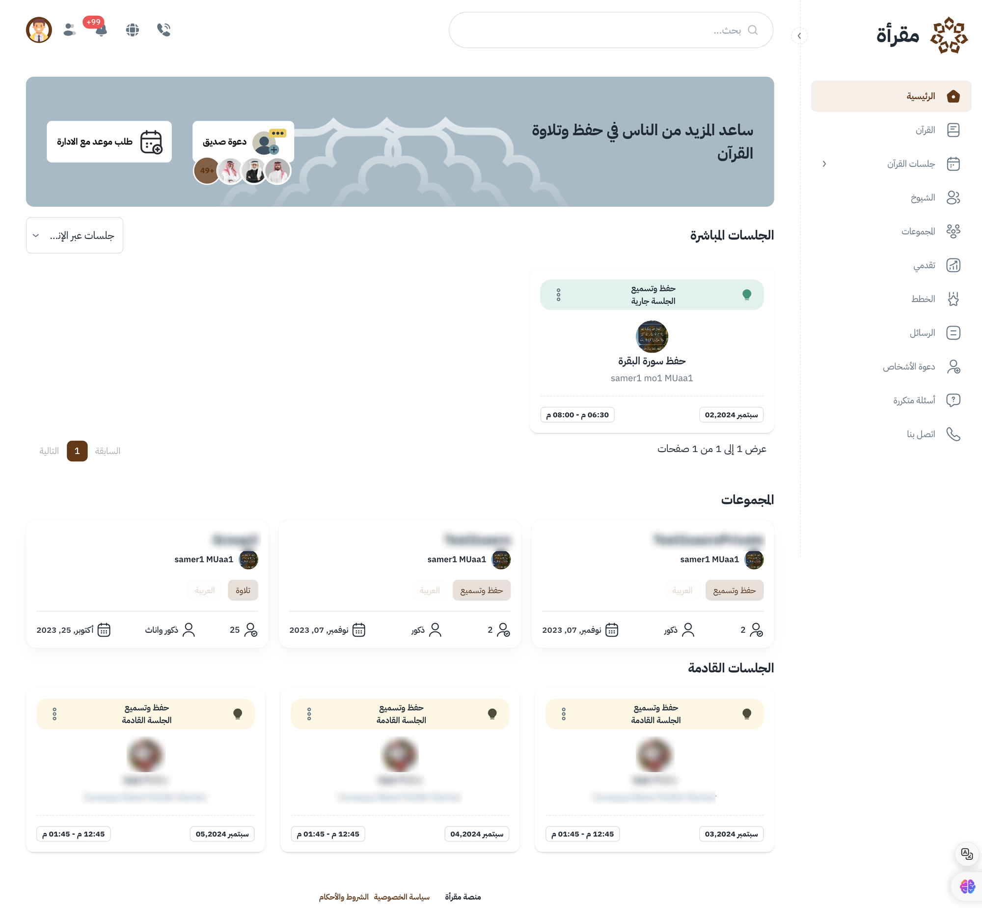 - الجلسات المباشرة ويمكنك فلترتها ( الجلسات عبر الإنترنت - الجلسات الحضورية )