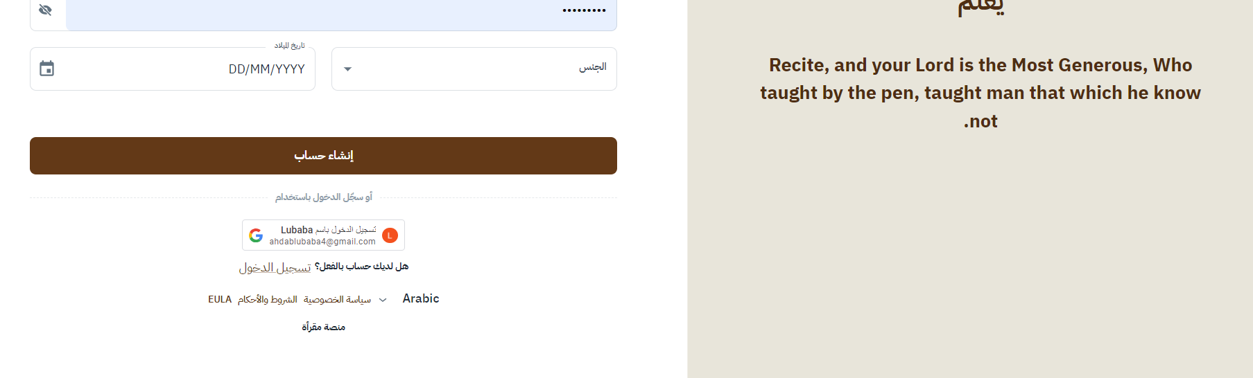 المعلمين إنشاء حساب المعلم إنشاء حساب المعلم يتم إنشاء حساب المعلم باتباع الخطوات التالية : أو التسجيل باستخدام خدمات غوغل السابق التالي