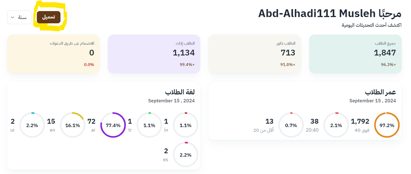 مع توفر ميزة تحميل الاحصائيات بصيغة pdf من خلال الضغط على زر ( تحميل)