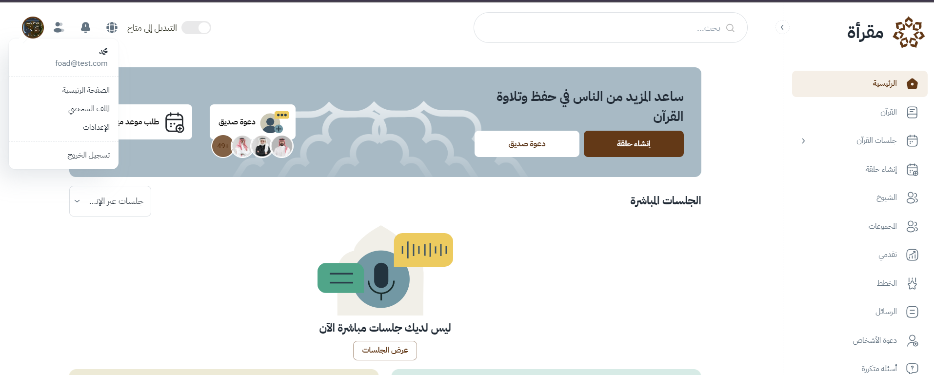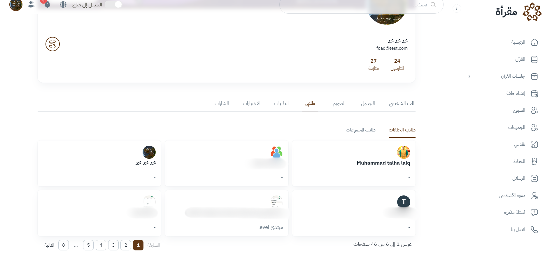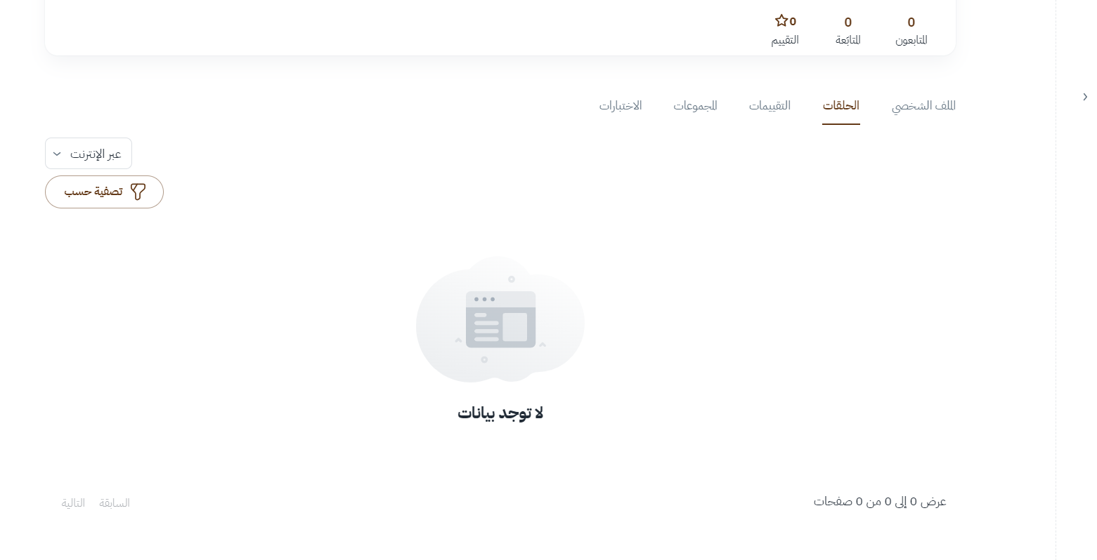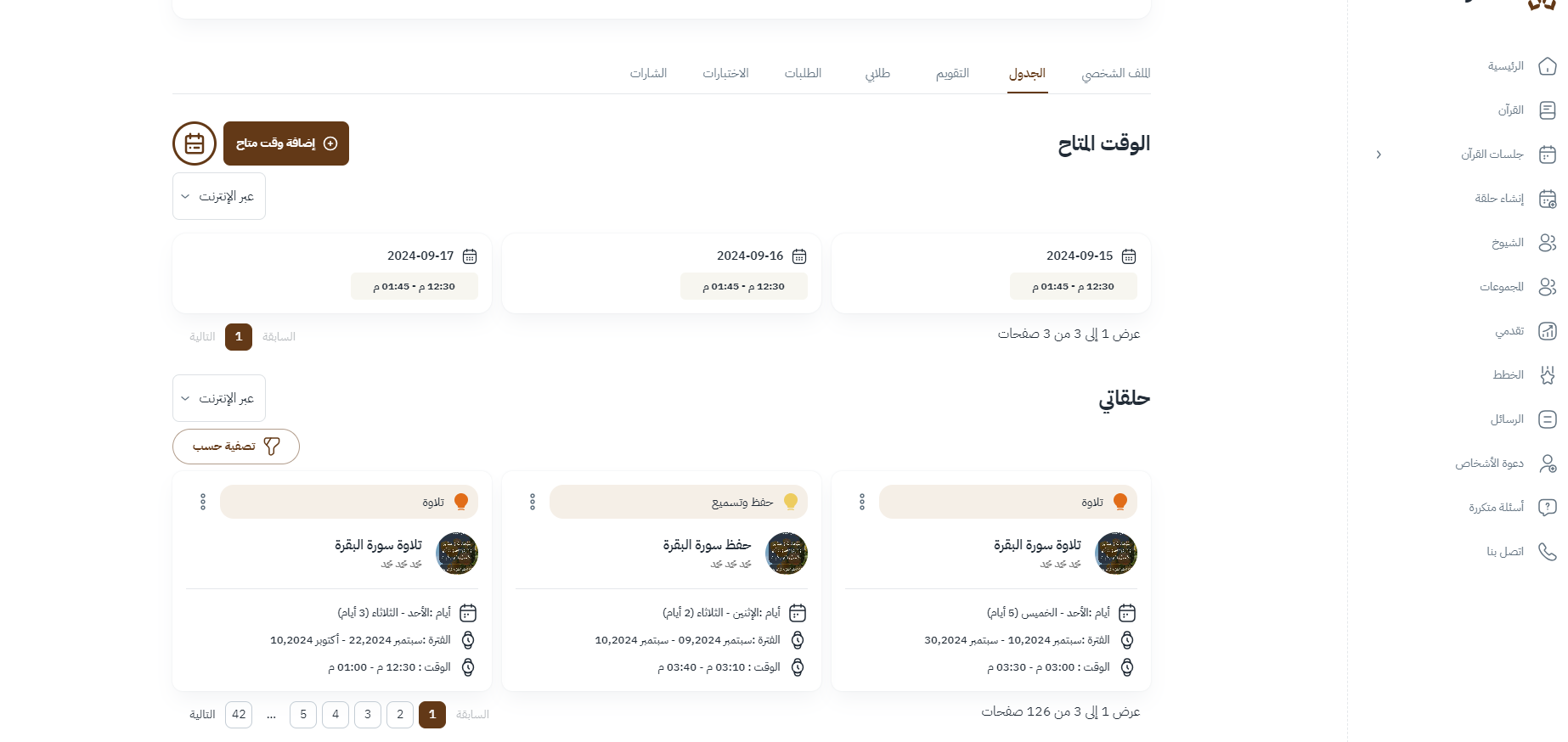 يعرض هذا القسم قائمة شاملة بجميع الحلقات التي قام المعلم بإنشائها.