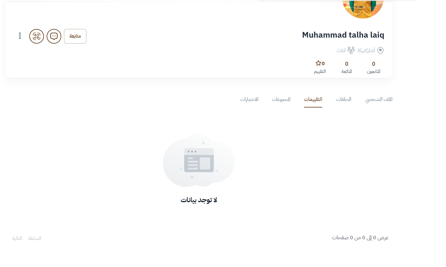 يحتوي هذا القسم على المجموعات المنضم إليها الطالب