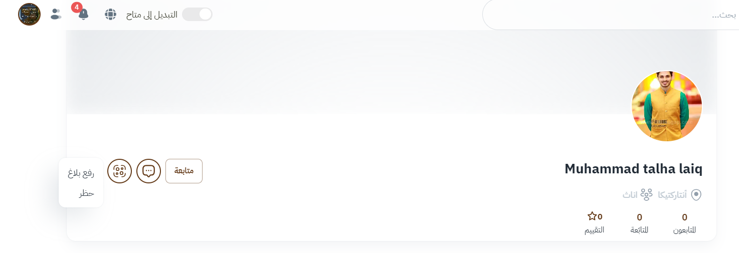 عند النقر على هذه الأيقونة يمكنك الدخول إلى الملف الشخصي