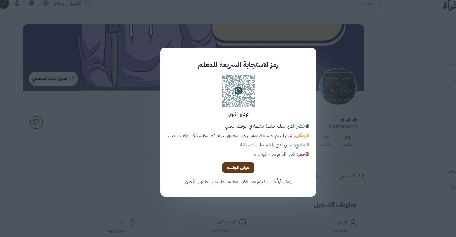 وعند الضغط على أيقونة QR يظهر :