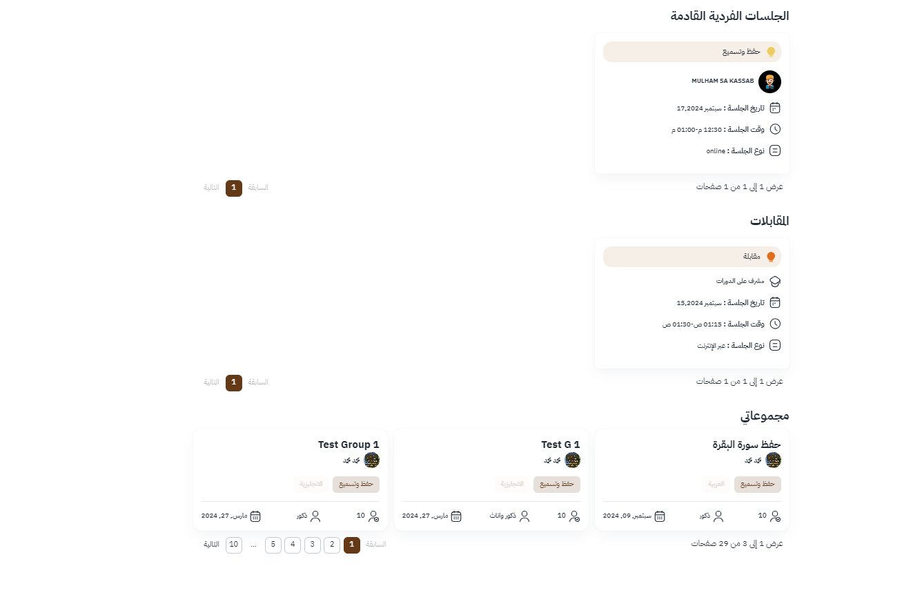 - تمكن المعلم من تصفية وعرض أنواع محددة من الجلسات حسب الحاجة.